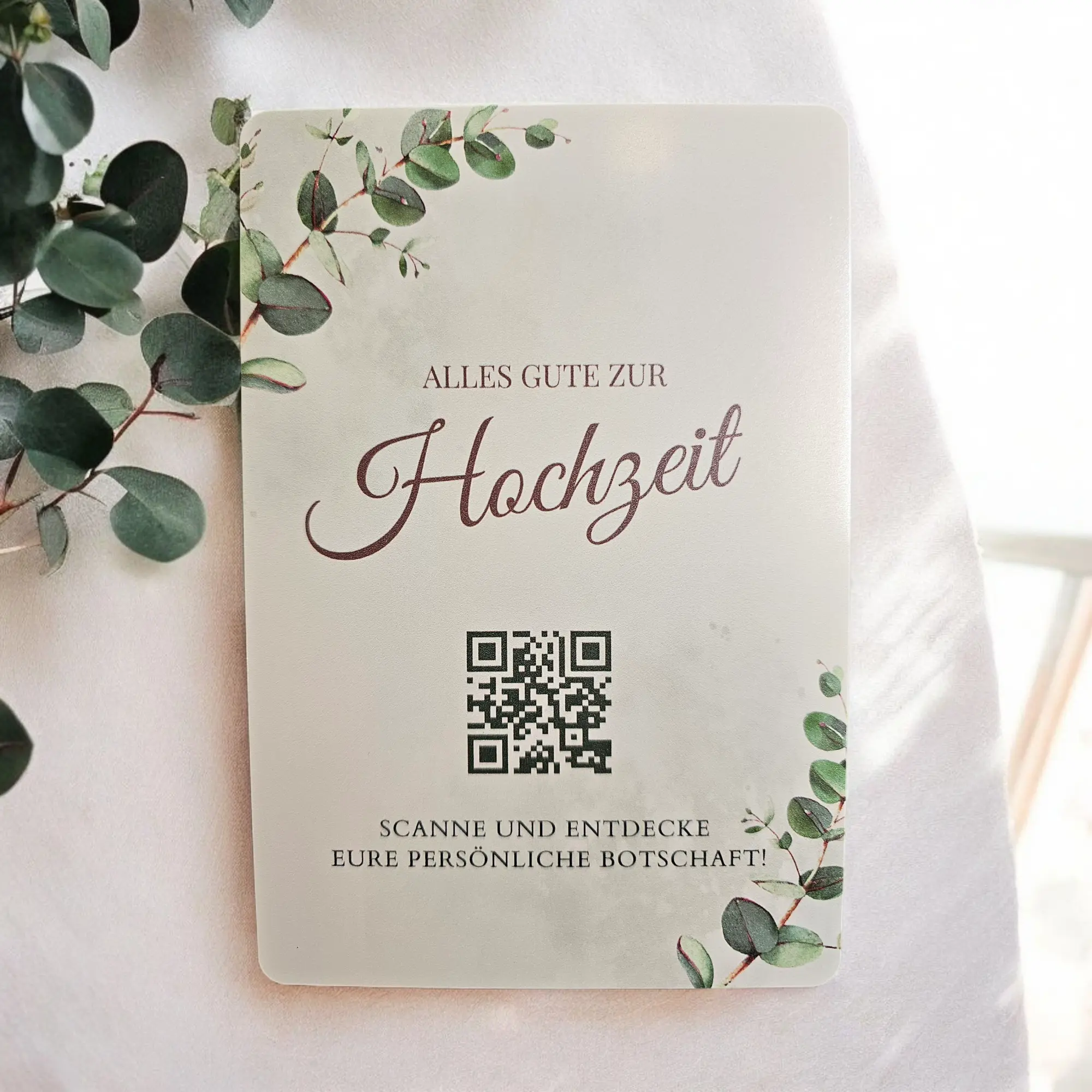 💌 Metal Prints – Metallkarte „Alles Gute zur Hochzeit“ mit QR-Code